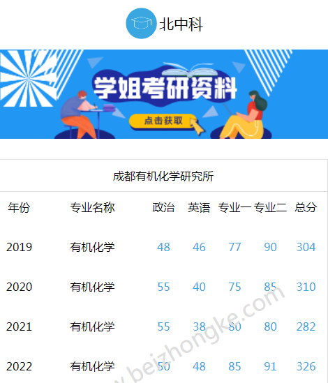 中科院成都有机化学研究所考研历年分数线